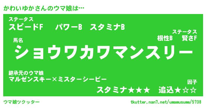 | ファンタジー風あだ名 | 『カワフェル』『エターナルカワイユカー』 |