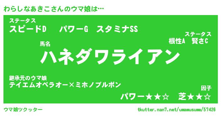 | ヒーロー風カッコイイあだ名 | 『スーパーワラシナアキコ』 |