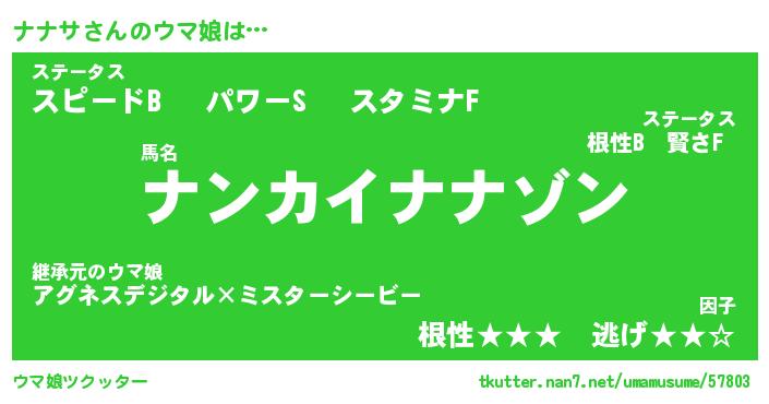| 欧米人風あだ名 | 『マイケルナナサ』『ナナサクリステル』 |