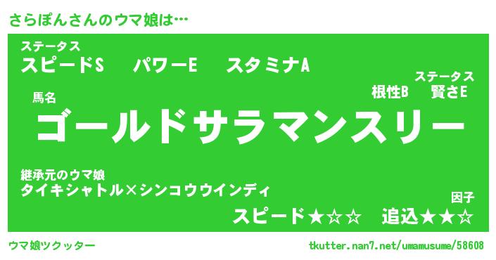 | ポケモン風あだ名 | 『サラチュウ』『サラポダネ』 |
