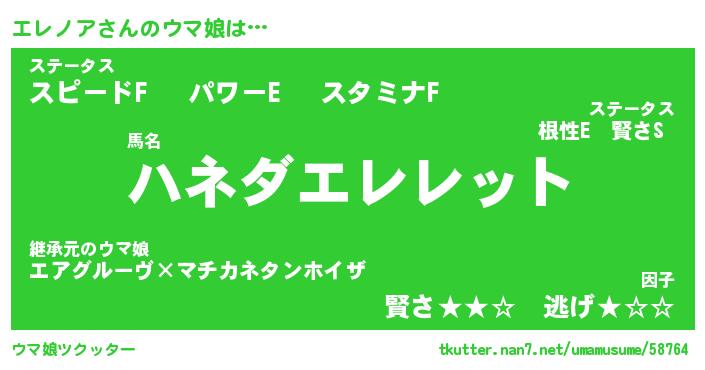 | 意味不明あだ名 | 『ペロリンエレノア』『永久保存エレノア』 |