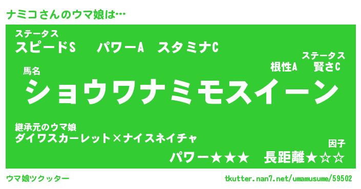 | 意味不明あだ名 | 『ペロリンナミコ』『ナミコフォーエバー』 |