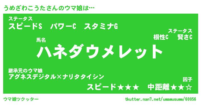 | 自動車の名前っぽいあだ名 | 『ウメティマ』『ウクア』『ウント』 |