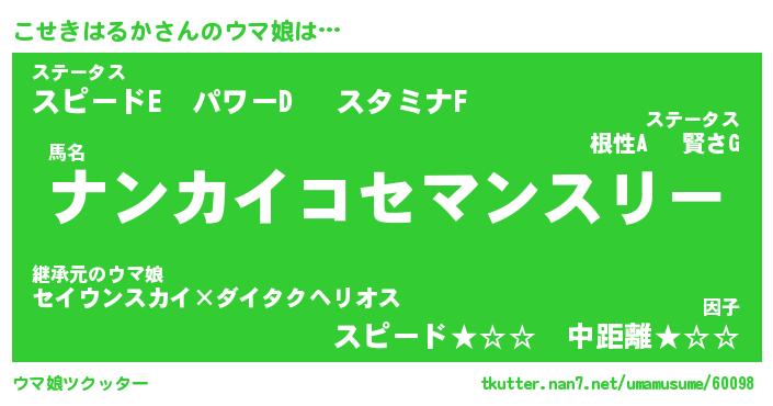 | 男性向けラノベタイトル風あだ名 | 『こせきはるかの憂鬱』 |