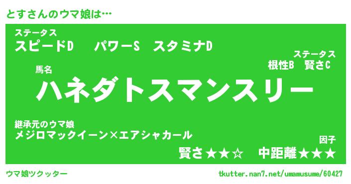 | ポケモン風あだ名 | 『トスチュウ』『トスダネ』『ヒトス』 |
