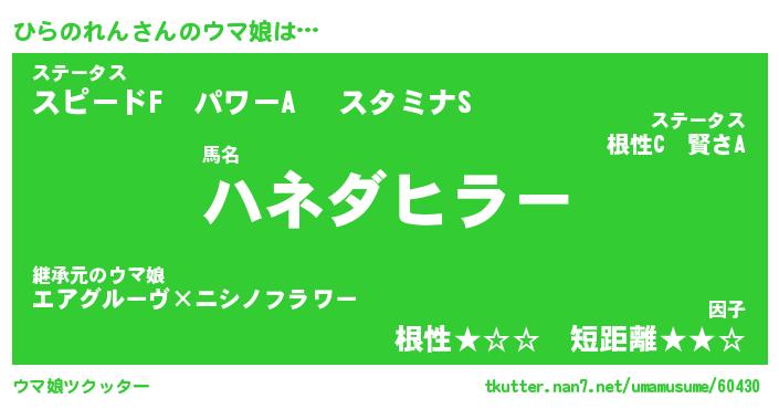 | ヒーロー風カッコイイあだ名 | 『スーパーヒラノレン』『黄金騎士ヒラ』 |