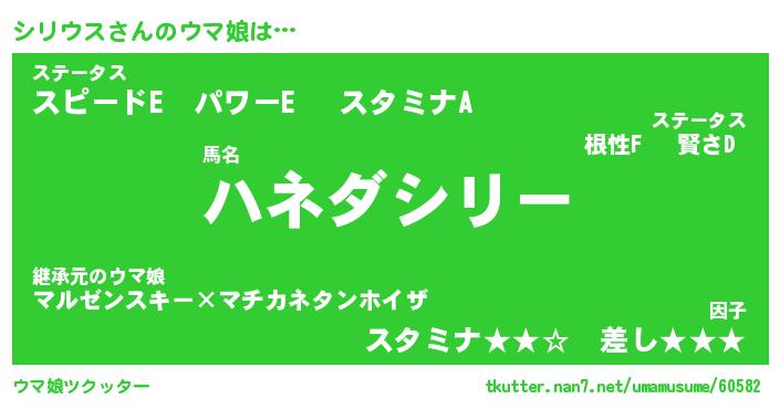 | 意味不明あだ名 | 『ペロリンシリウス』『永久保存シリウス』 |