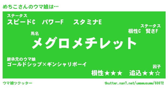 | ツイッター | めちこさんのツイッターID『konnyaku_kun』 |