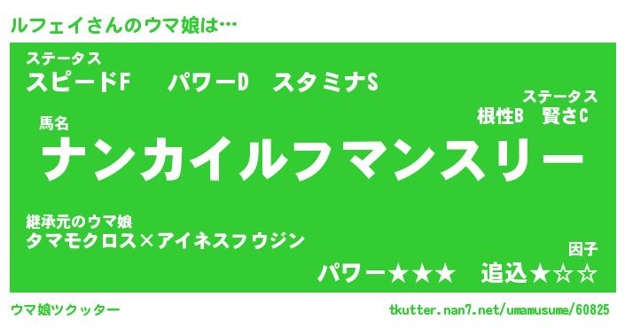 | ヘコむあだ名 | 『ルフふぇ~』『つくし』 |
