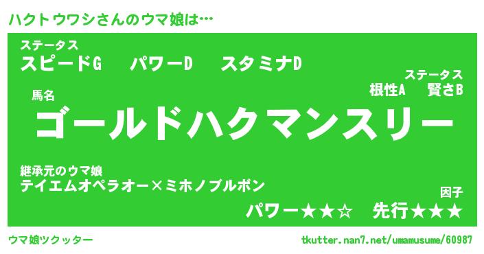| 自動車の名前っぽいあだ名 | 『ハクティマ』『ハクア』『ハント』 |