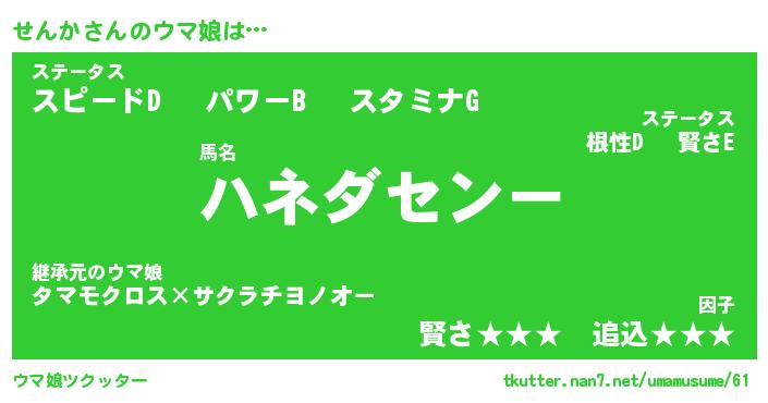 | ポケモン風あだ名 | 『センチュウ』『センカダネ』 |
