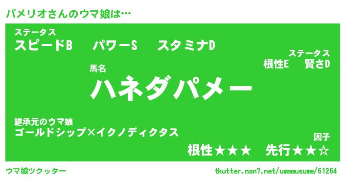 | ヘコむあだ名 | 『パメにー』『牛乳』『パメっちょ』 |