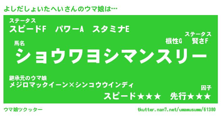 | 胡散臭い通販商品みたいなあだ名 | 『必ず成功する水晶球…その名も「よしだしょいたへい」』 |