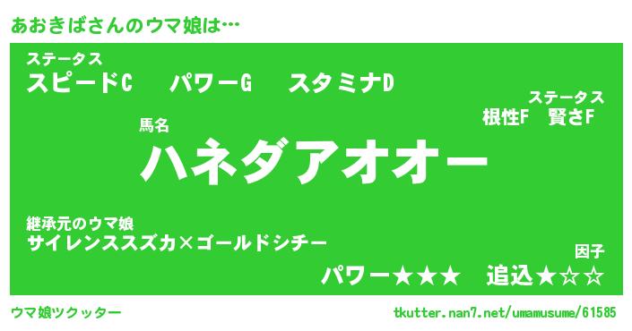 | ヒーロー風カッコイイあだ名 | 『スーパーアオキバ』『銀牙騎士アオ』 |