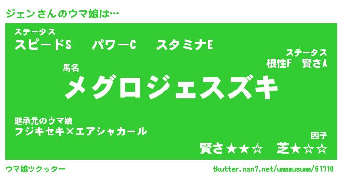 | ポケモン風あだ名 | 『ジェチュウ』『ジェンダネ』 |