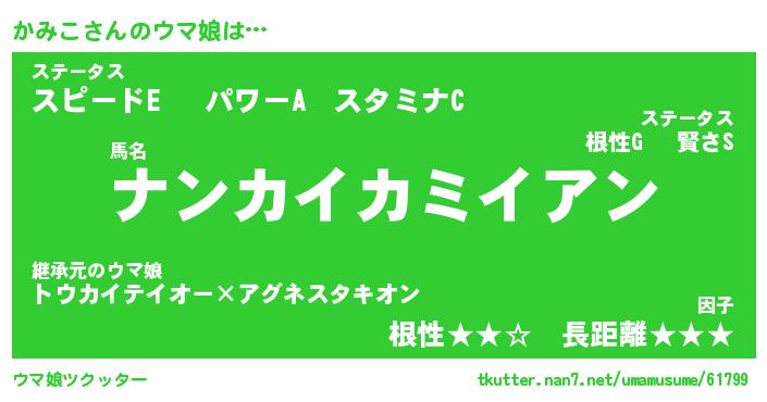 | 自動車の名前っぽいあだ名 | 『プリカミ』『カスラー』『ヴィッカ』 |