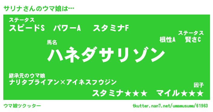 | 意味不明あだ名 | 『ペロリンサリナ』『サリナフォーエバー』 |