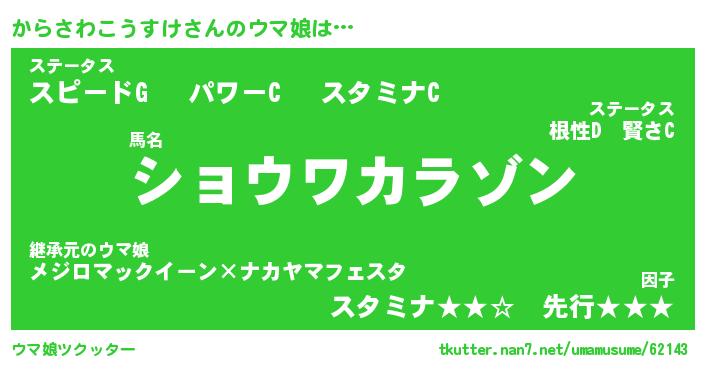 | ポケモン風あだ名 | 『カラチュウ』『カラサダネ』 |