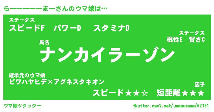 | ポケモン風あだ名 | 『ラーチュウ』『ラーーダネ』 |