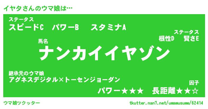 | ポケモン風あだ名 | 『イヤチュウ』『イヤタダネ』 |