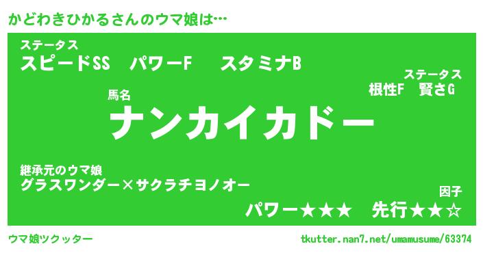 | ポケモン風あだ名 | 『カドチュウ』『カドワダネ』 |