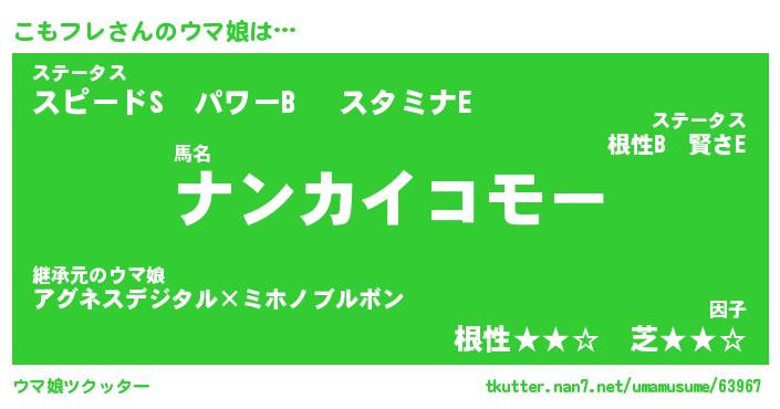 | 欧米人風あだ名 | 『マイケルこもフレ』『ウサインこもフレ』 |
