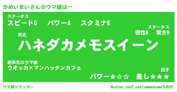 | ヒーロー風カッコイイあだ名 | 『スーパーカメイマイ』『天弓騎士カメ』 |