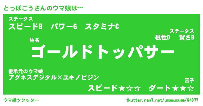 | ヒーロー風カッコイイあだ名 | 『スーパートッパコウ』『魔戒騎士トッ』 |