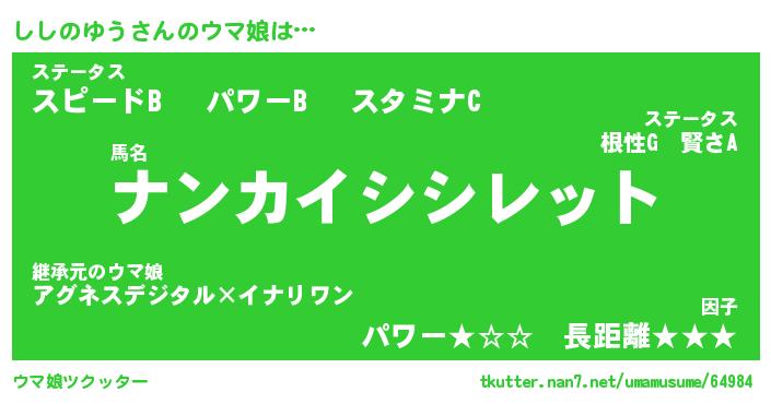 | ポケモン風あだ名 | 『シシチュウ』『シシノダネ』 |