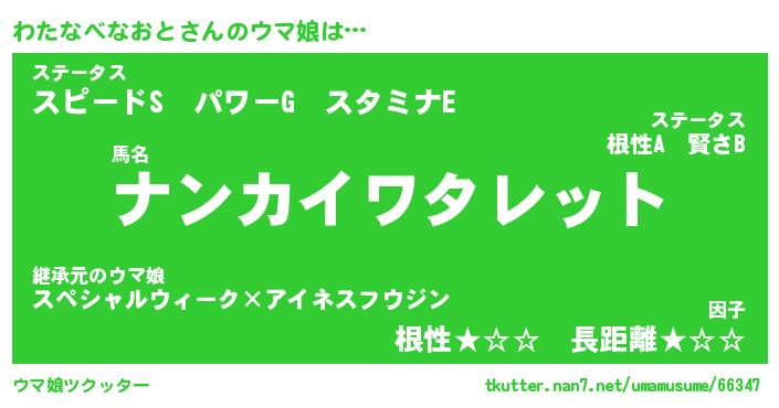 | ポケモン風あだ名 | 『ワタチュウ』『ワタナダネ』 |