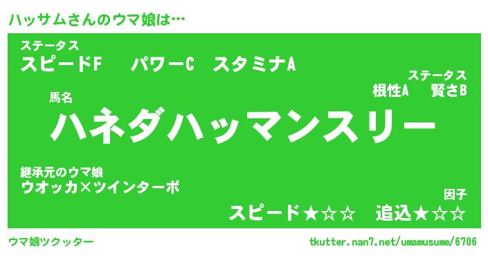 | 意味不明あだ名 | 『ペロリンハッサム』『永久保存ハッサム』 |