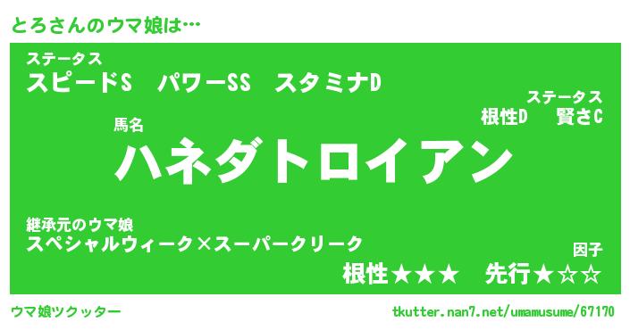 | 自動車の名前っぽいあだ名 | 『トロティマ』『トスラー』『トンR』 |