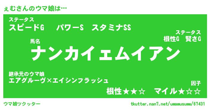 | ファンタジー風あだ名 | 『ェムフェル』『エターナルェムー』 |