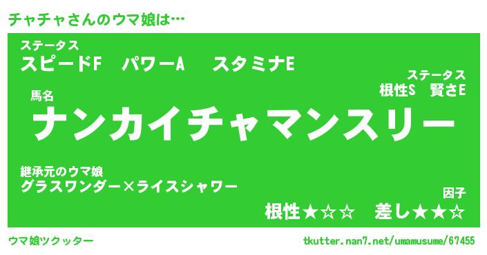 | 意味不明あだ名 | 『ペロリンチャチャ』『永久保存チャチャ』 |