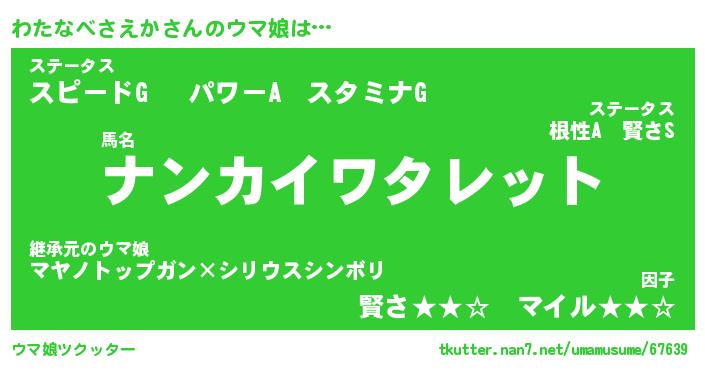 | ファンタジー風あだ名 | 『ワタフェル』『ファントムワタス』 |