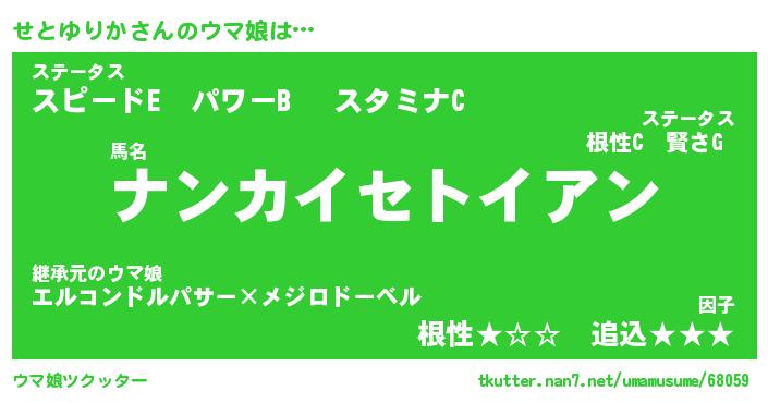 | 伝説のあだ名 | 『不死鳥のスナイパーせとゆりか』 |