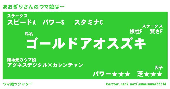 | ポケモン風あだ名 | 『アオチュウ』『アオギダネ』 |
