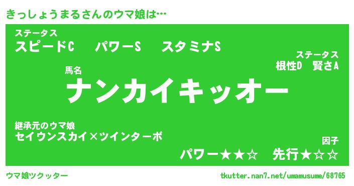 | 男性向けラノベタイトル風あだ名 | 『きっしょうまるの憂鬱』 |