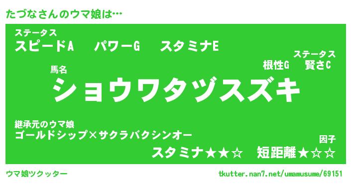 | 意味不明あだ名 | 『ペロリンたづな』『たづなフォーエバー』 |
