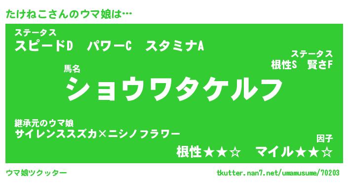 | ファンタジー風あだ名 | 『タケフェル』『エターナルタケネコー』 |