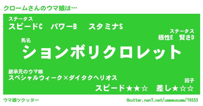 | 意味不明あだ名 | 『ペロリンクローム』『永久保存クローム』 |