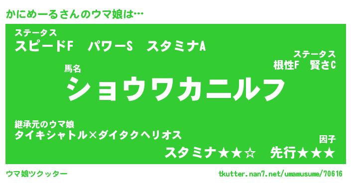 | 胡散臭い通販商品みたいなあだ名 | 『必ず成功する霊験あらたかなお札…その名も「かにめーる」』 |