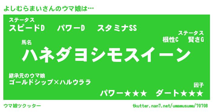 | 伝説のあだ名 | 『封印されし竜騎士よしむらまい』 |