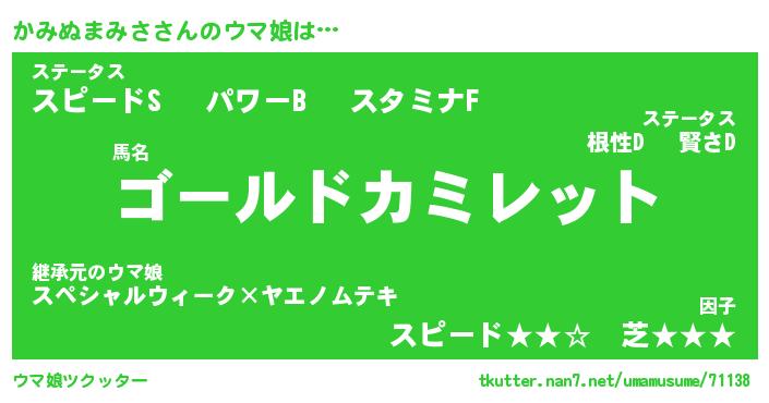 | ファンタジー風あだ名 | 『カミフェル』『ファントムカミス』 |