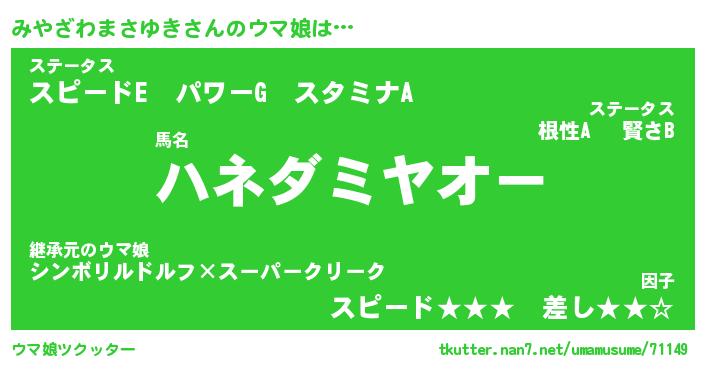 | 肩書あだ名 | 『みやざわまさゆき御曹司』 |