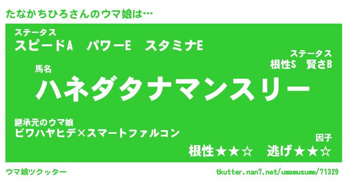 | 自動車の名前っぽいあだ名 | 『タナティマ』『タスラー』 |