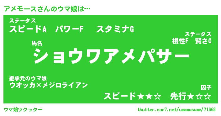 | ヒーロー風カッコイイあだ名 | 『スーパーアメモース』『黄金騎士アメ』 |