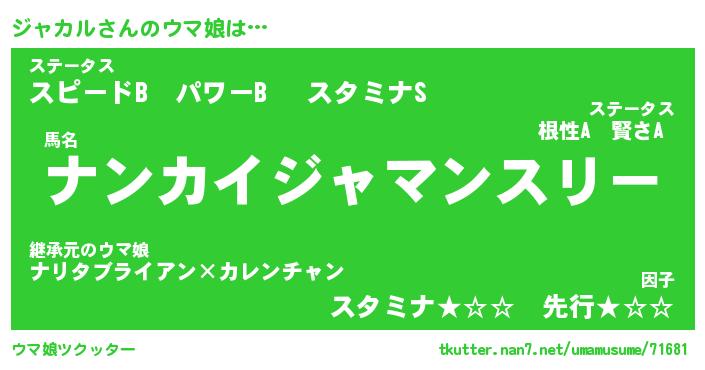 | 意味不明あだ名 | 『ペロリンジャカル』『永久保存ジャカル』 |