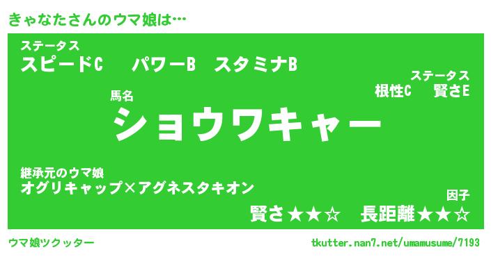 | 伝説のあだ名 | 『伝説のスナイパーきゃなた』 |
