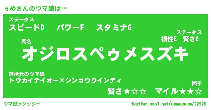 | ポケモン風あだ名 | 『ゥメチュウ』『ゥメダネ』『ヒゥメ』 |